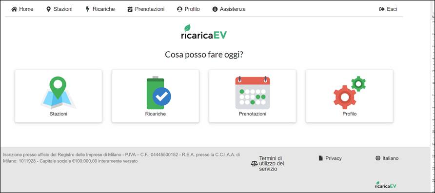 Una volta inseriti tutti i dati richiesti sarà possibile accedere alla piattaforma, che consente di visualizzare le stazioni di ricarica disponibili nella rete, lo storico delle ricariche effettuate, prenotare una ricarica e gestire il proprio account.